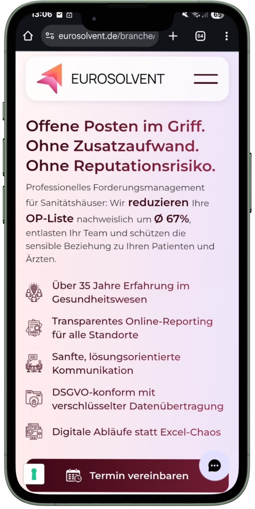 Der Einstieg ist so geschrieben, dass Sanitätshäuser sich sofort wiedererkennen: OP-Liste, Excel-/Tool-Wildwuchs, Zeitverlust und Reputationsrisiko. Damit ist die Ausgangslage in Sekunden klar – ohne “Marketing-Blabla”.
